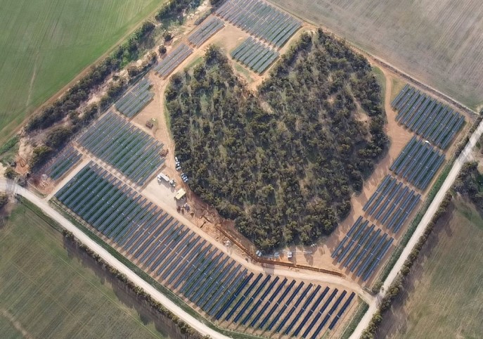 澳大利亞默里河沿岸的一個小鎮(zhèn)上,從高空俯視下去,能看到一片愛心形狀的植被。最近,陽光能源的組件抵達(dá)了這個小鎮(zhèn),并與這一片原始森林來了一場“愛”的邂逅。