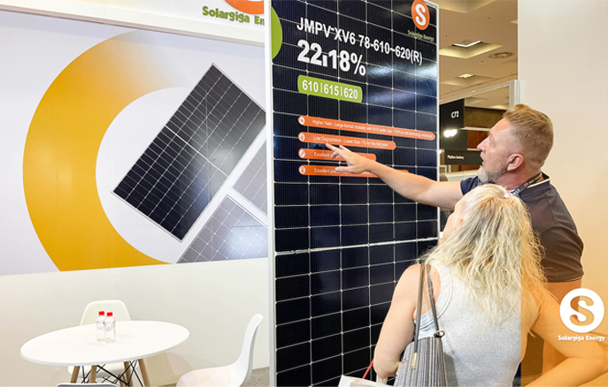 作為全球知名光伏組件制造商,陽光能源在本次大會(huì)上向來自全球的業(yè)界翹楚展示了我司的先進(jìn)技術(shù)和創(chuàng)新產(chǎn)品。陽光能源3款Giga-P系列組件面向當(dāng)?shù)卮笮偷孛骐娬镜葢?yīng)用場景,量產(chǎn)功率最高可達(dá)670W;此外,陽光能源還展示了1款 Giga-N系列78片雙玻組件產(chǎn)品,以更高效、更前沿的組件特性,俘獲大批觀眾駐足欣賞。展會(huì)現(xiàn)場,陽光能源還與當(dāng)?shù)鼗锇楣餐接懥四戏枪夥a(chǎn)業(yè)發(fā)展新機(jī)遇。