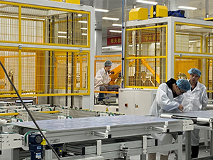 公司擁有行業(yè)領先的自動化標準及先進的智能化生產(chǎn)線,在線操作工大量減少,工人勞動強度降低80%以上。核心自動化設備有自動串焊機、機器人排版機、匯流條焊接機、全自動層壓機、自動裝框系統(tǒng)、自動灌膠系統(tǒng)、EL雙面外觀一體機、接線盒自動焊接機、分類下料機械手,整線節(jié)拍25秒,單線產(chǎn)能300MW/年。生產(chǎn)過程信息實時化控制,通過實時監(jiān)控運營現(xiàn)場的實際情況,進行及時的反應。根據(jù)MES等系統(tǒng)采集的實時數(shù)據(jù),及時統(tǒng)計、分析,快速的對生產(chǎn)、設備、質(zhì)量、倉庫、人員等業(yè)務進行統(tǒng)籌分析,并對運營情況進行跟蹤處理。生產(chǎn)設備全部國產(chǎn)化,全國組件生產(chǎn)的一流高端生產(chǎn)線。